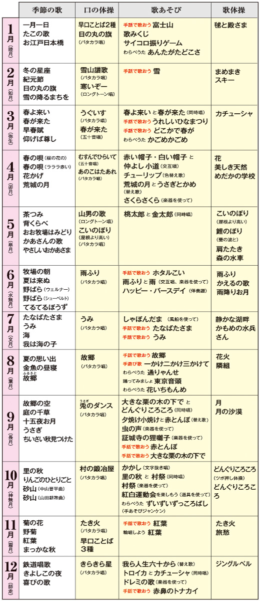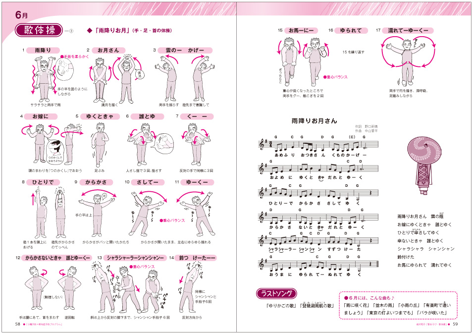 手話や手あそびをふんだんに取り入れ、どこでも使える・誰でもできる・元気になれる基本ワザを12カ月分まとめました。